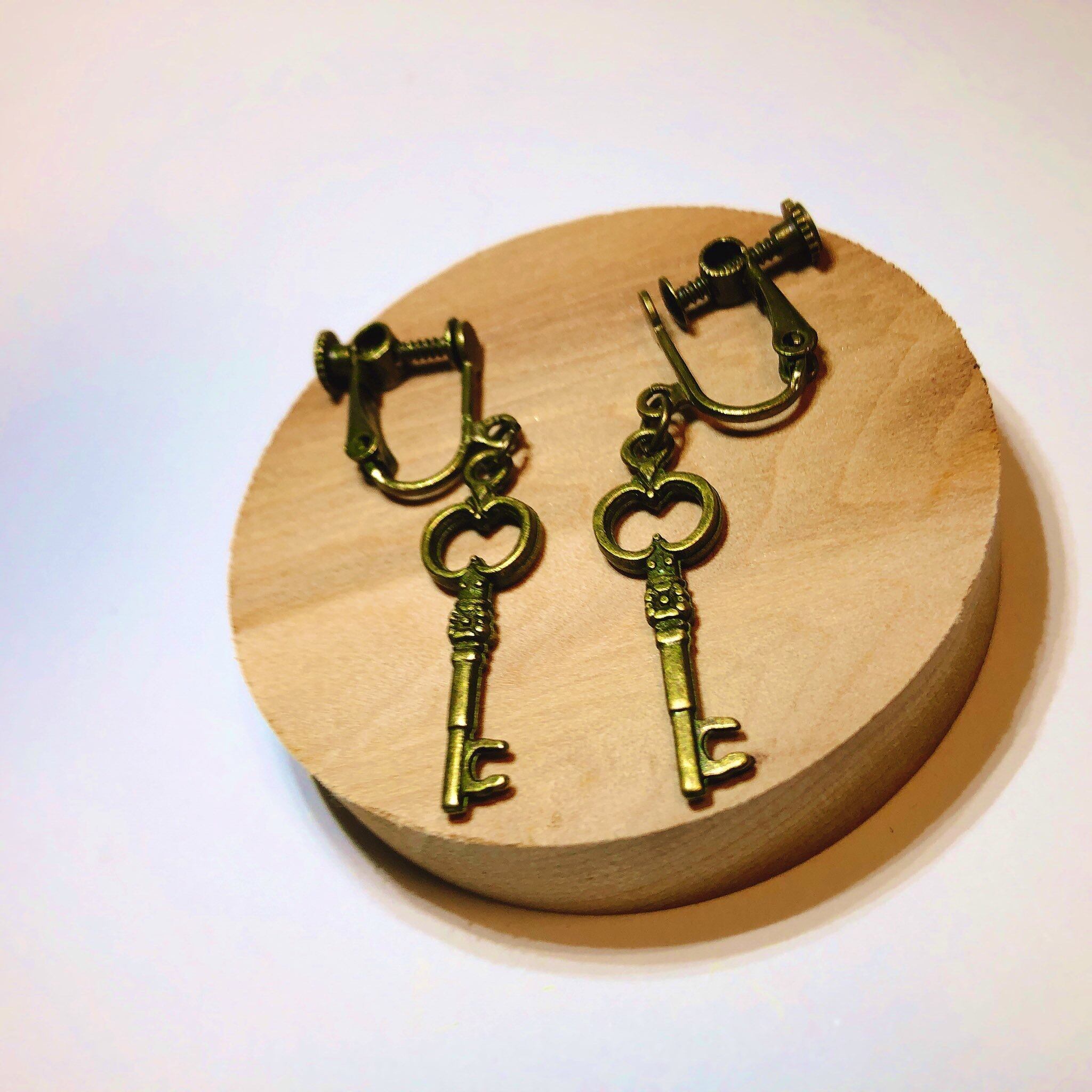 アンティーク調の小さな鍵のイヤリングです。